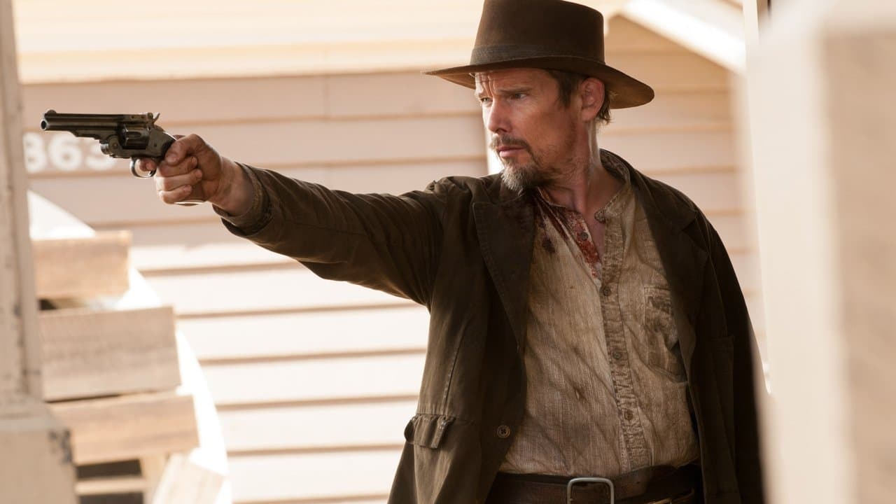 In a Valley of Violence is a western, action film released in 2016 exploring themes of civil war, revenge, murder, killer, dog, cowboy. Directed by Ti West, it stars Ethan Hawke, John Travolta, Taissa Farmiga. The story of a drifter named Paul who arrives in a small town seeking revenge on the thugs who murdered his friend. Sisters Mary Anne and Ellen, who run the town's hotel, help Paul in his quest for vengeance.