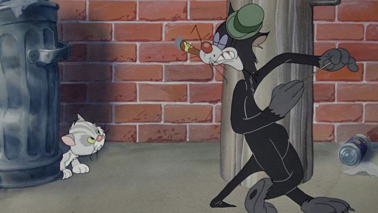 Bulldog Marc Anthony, guarding a construction site, finds a kitten, Pussyfoot, to whom he affectionately gives a wiener for lunch. A hungry grown cat sees and is determined to have the wiener.