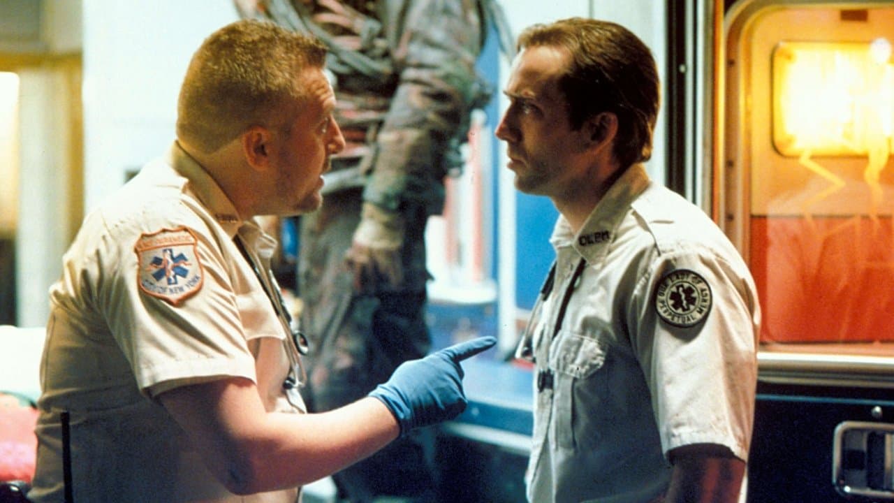 Bringing Out the Dead is a drama film released in 1999 exploring themes of dying and death, new york city, coma, based on novel or book, ambulance, drug addiction. Directed by Martin Scorsese, it stars Nicolas Cage, Patricia Arquette, John Goodman. Once called "Father Frank" for his efforts to rescue lives, Frank Pierce sees the ghosts of those he failed to save around every turn. He has tried everything he can to get fired, calling in sick, delaying taking calls where he might have to face one more victim he couldn't help, yet cannot quit the job on his own.